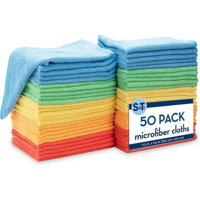 S&T INC. 50 Pack Microfiber Cleaning Cloth, Bulk Towels for Home, Reusable Microfiber Towels for Cars, Cleaning Rags, Assorted